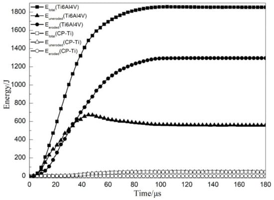 where Ek_eroded and Ek_uneroded are the kinetic energy values of eroded elements and uneroded elements, respectively. Ei_eroded and Ei_uneroded are the internal energy values of eroded elements and uneroded elements, respectively.