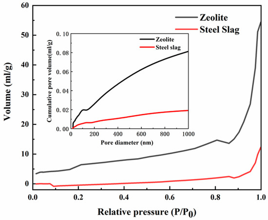 Nitrogen adsorption–desorption isotherms on steel slag and zeolite.