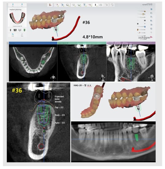 - Ochi, M.; Kanazawa, M.; Sato, D.; Kasugai, S.; Hirano, S.; Minakuchi, S. Factors affecting accuracy of implant placement with mucosa-supported stereolithographic surgical guides in edentulous mandibles. Comput. Biol. Med. 2013, 43, 1653–1660. [Google Scholar] [CrossRef]