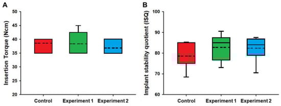 | Control (Straumann, SLActive Bone Level Implant) | Experiment 1 (NeobiotechCMI IS-III ActiveImplant) | Experiment 2 (NeobiotechCMI IS-III HActiveImplant) | ||||