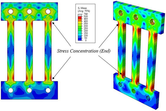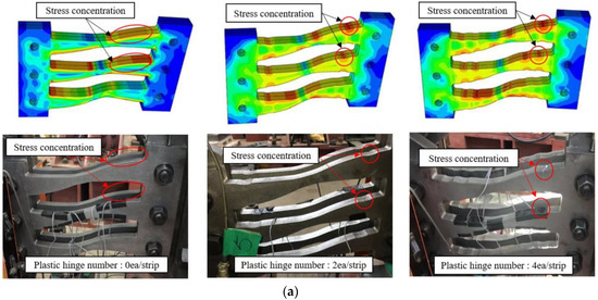 Step-07. The plastic hinges are designed using a radius cut, which forms the critical section. Precise manufacturing of the position where the cross-section changes is necessary to ensure that the notch remains as undamaged as possible. The radius-cut design assumes an area of b × h. The width and depth of the notch are determined based on the location where stress concentration occurs, which was determined via FEM simulations using Abaqus (Dassault systems, Waltham, Boston, MA, USA). The curvature and depth of the notch are determined such that the desired strip width can be formed naturally.