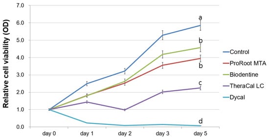 - Lee, D.; Park, J.B.; Song, D.; Kim, H.M.; Kim, S.Y. Cytotoxicity and Mineralization Potential of Four Calcium Silicate-Based Cements on Human Gingiva-Derived Stem Cells. Coatings 2020, 10, 279. [Google Scholar] [CrossRef]