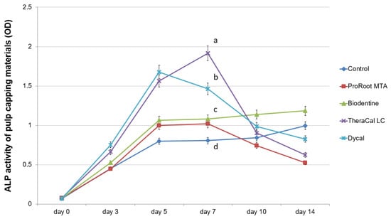 - Tomas-Catala, C.J.; Collado-Gonzalez, M.; Garcia-Bernal, D.; Onate-Sanchez, R.E.; Forner, L.; Llena, C.; Lozano, A.; Moraleda, J.M.; Rodriguez-Lozano, F.J. Biocompatibility of New Pulp-capping Materials NeoMTA Plus, MTA Repair HP, and Biodentine on Human Dental Pulp Stem Cells. J. Endod. 2018, 44, 126–132. [Google Scholar] [CrossRef] [PubMed]