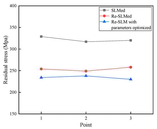 - Different scanning strategies had different effects on residual stress distribution. The strategy of partition scanning had the best residual stress distribution in SLM. The size and distribution of residual stress could be effectively improved by the process of rescanning. In contrast, the strategy of partition rescanning had the most significant effect on the improvement of residual stress.