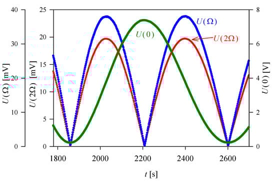 I(2Ω), respectively, were recorded. The non-modulated component of the voltage is given by