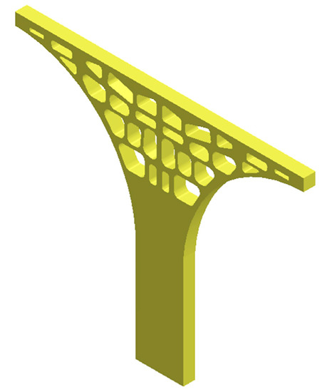 Recently, SLM is the most potential manufacturing process in additive manufacturing technology [17,18,19]. Simultaneously, compared with other forming methods (such as casting, forging, welding, and machining), SLM breaks through the limitation of the existing process for complex parts, which can realize the integration of structure, manufacturing, and function [20,21]. For example, Leary et al. analyzed the mechanical strength of AlSi10Mg block support structures prepared by SLM and showed that the peel strength of the support structure was significantly less than its tensile strength [22]. Ataee et al. studied the nanoindentation behavior, wear resistance, and in vitro biocompatibility of commercial pure Ti (CP-Ti) prepared by SLM and Ti64 scaffolds prepared by the Electron Beam Melting (EBM) compared to those of casting CP-Ti. It was found that for the CP-Ti made by SLM and the Ti64 made by EBM, the lateral wear resistance is higher than that in the building direction, up to approximately 25% and 82%, respectively. In the nanoindentation test, the wear resistance of CP-Ti stents made by SLM was significantly improved compared to the densely cast CP-Ti, and the average wear height was reduced by 75%. In in vitro cell culture studies, CP-Ti scaffolds prepared by SLM showed higher cell viability and cell adhesion density at all unit cell sizes compared to Ti64 scaffolds [23]. Additionally, based on the characteristics of the porous scaffolds, the shapes of tree branches (complex and fractal-like) also have a series of mechanical and biological functions. The relation between them always draws the attention of architects focusing on the shape and structural strength [24]. For instance, Zhu et al. found that tree-shaped structure is an effective design method for a lightweight support structure in the SLM process, and they proposed an improved particle swarm optimization (PSO) strategy combining the experimental method and volume minimization framework. The results showed that this approach can effectively reduce the volume of support and printing time [25]. Zhang et al. fabricated two types of support structures (branch and lattice) by SLM. The analysis and experiment showed that the new design of the support structures had great potential in getting higher efficiency and reducing the manufacturing cost (for example, when the diameter of support is 1.5 mm and the inclination angle of the branch is 45 degrees, the lightweight ratio is 23% in practice and the theoretical value is 39% compared with the opposite lattice support) [26].
