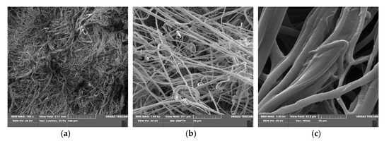 The microscopic analysis of fibers was performed on a Tescan Vega 3 scanning electron microscope (Brno, Czech Republic) [60]. Magnification was from 500× to 5000×.