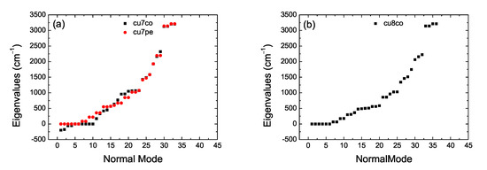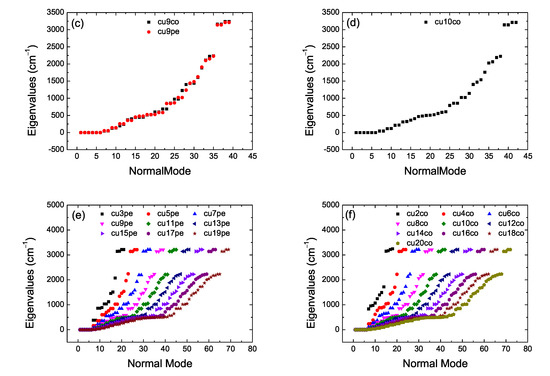 n is the number of atoms, N is the number of carbon atoms. The number of modes, , from which three are translational modes (TM). Linear and nonlinear molecules have two and three rotational modes (RM), respectively; therefore, the number of vibrational modes (VM) is and , respectively.