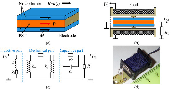 - Dong, S.; Li, J.F.; Viehland, D. Longitudinal and transverse magnetoelectric voltage coefficients of magnetostrictive/piezoelectric laminate composites: Theory. IEEE Trans. Ultrason. Ferroelectr. Freq. Control 2003, 50, 1253–1261. [Google Scholar] [CrossRef] [PubMed]