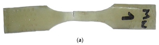 Figure 10a shows the physical form of the specimen after its removal from the test stand. The specimen was subjected to treatment that involved removing scraps of the adhesive until the adhesive was present only on the surface of the lap, with dimensions 25 mm × 12.5 mm × 1 mm (Figure 10b).