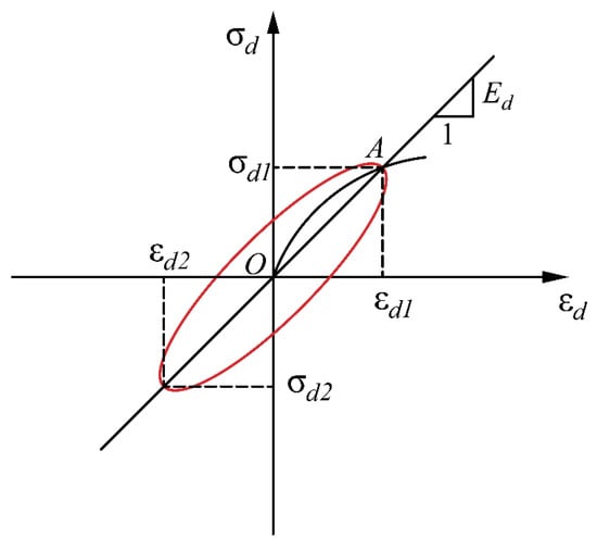 where σd1, σd2, εd1, and εd2 are maximum values of axial compressive stress, axial tensile stress, axial compressive strain, and axial tensile strain, respectively. Therefore, the dynamic shear modulus of a specimen is defined as: