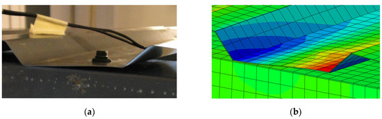 Boundary conditions were assigned using references points. In nodes 1 and 3 the displacement in y direction was fixed; in node 4—displacements in x, y and z directions were fixed (for numbers of nodes see Figure 1). In node 2 the displacement increase was applied in the direction of the frame diagonal until the failure of the panel. Stress maps were obtained. The numerical analysis results are presented in Section 3.2.