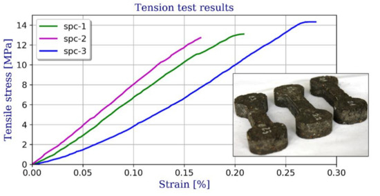 The tensile strength of the polymer concrete was experimentally measured using the Instron 5567 testing machine. Three specimens from the batch were tested in order to get the split tensile strength. The samples were demolded after 24 h of casting and allowed to cure for 7 days. The force at failure was recorded (see Figure 3).