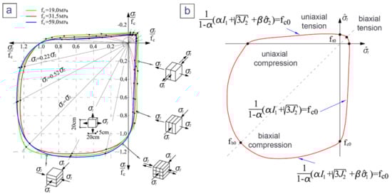 - Kupfer, H.; Hilsdorf, H.K.; Rusch, H. Behavior of concrete under biaxial stresses. ACI J. 1969, 66, 656–666. [Google Scholar]