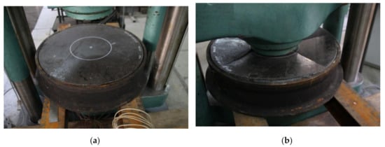 Laboratory test setup of a vinyl ester polymer concrete manhole cover [27], (a) before loading, (b) after failure.