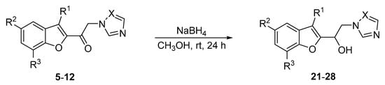 3.1. Synthesis and Reduction of Novel Benzofuryl α-Azole Ketones