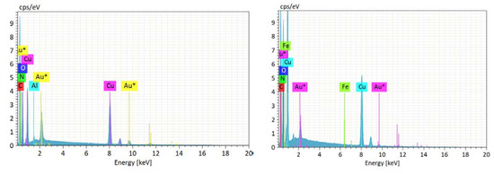 The Fe3+ adsorption capacity of 9 was further investigated by EDX studies. Figure 10 shows the EDX spectra of 9 and Fe@9; Cu, C, and O are detected in both samples, with the the second sample displaying one additional peak corresponding to the Fe3+ ion that has been adsorbed, hence confirming the metal uptake. It is noteworthy that 9 can be easily regenerated from Fe@9 by treatment with a 0.2 M EDTA solution. The activated MOF displays an identical sorption capacity with that of the original 9, which is retained for three cycles of regeneration/reuse experiments (Figure S9). Thus, 9 is reusable, a property which is paramount for practical applications.