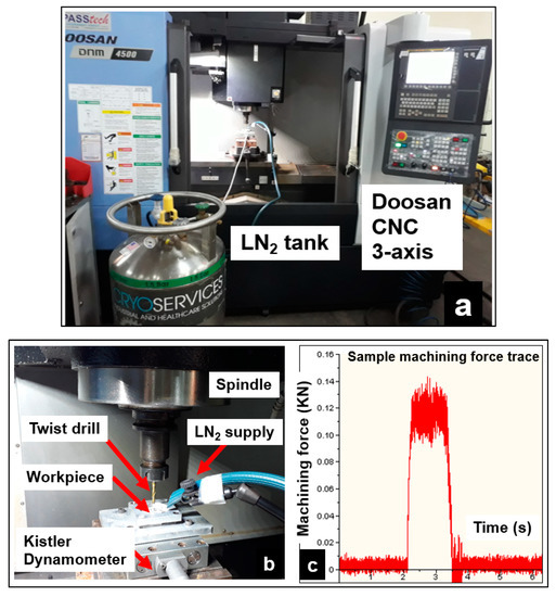 - Koklu, U.; Coban, H. Effect of dipped cryogenic approach on thrust force, temperature, tool wear and chip formation in drilling of AZ31 magnesium alloy. J. Mater. Res. Technol. 2020, 9, 2870–2880. [Google Scholar] [CrossRef]