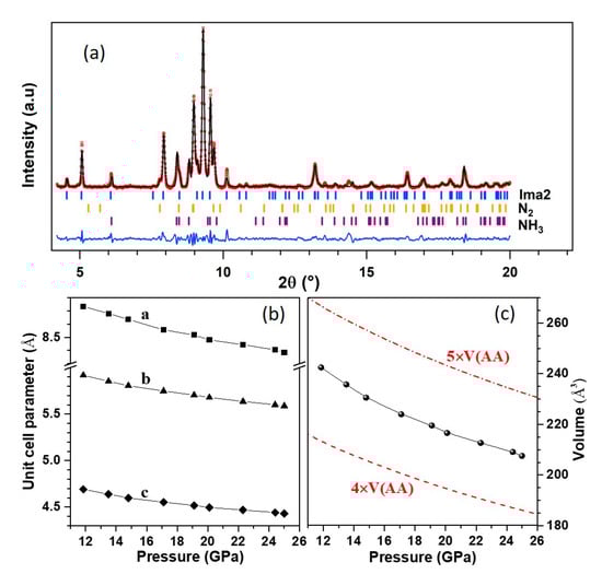 - Datchi, F.; Ninet, S.; Gauthier, M.; Saitta, A.M.; Canny, B.; Decremps, F. Solid ammonia at high pressure: A single-crystal X-ray diffraction study to123GPa. Phys. Rev. B 2006, 73, 174111. [Google Scholar] [CrossRef]