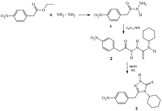 2.2.3. Preparation of 4-Cyclohexyl-3-(4-nitrophenyl)methyl-1,2,4-triazolin-5-thione (3)
