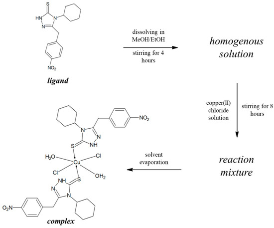 Czylkowska, A.; Drozd, M.; Biernasiuk, A.; Rogalewicz, B.; Malm, A.; Pitucha, M. Synthesis, Spectral, Thermal and Biological Studies of 4-Cyclohexyl-3-(4-nitrophenyl)methyl-1,2,4-triazolin-5-thione and Its Copper(II) Coordination Compound, [CuCl2(H2O)2L2]. Materials 2020, 13, 4135. https://doi.org/10.3390/ma13184135