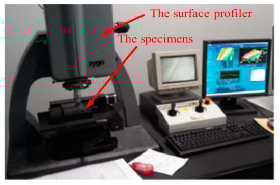 The specimens were processed in a suitable factory. Their material was C45 steel, with dimensions of 80 mm × 80 mm × 30 mm, obtained by the milling and grinding methods. Surface morphology data were obtained by using a surface profiler (NEW view 5022) manufactured by ZYGO (Middlefield, CT, USA). The instrument uses the principle of white light interference to detect the microgeometric characteristics of the surface; its vertical resolution is 0.1 nm and lateral resolution is 110 nm. The specific specimen and the test instrument are shown in Figure 2 and Figure 3, respectively.