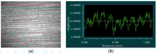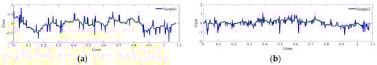 In order to reflect the true surface morphology, this paper measured the upper and lower surfaces of each specimen, and extracted two-dimensional surface profile data from the measured morphologies, which provided the basis for comparisons with the simulated profile data. The specimen surface and measured profile data are shown in Figure 4.