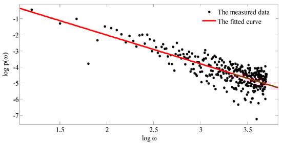 In practical applications, the power spectrum P(ω) is usually obtained by discrete Fourier transform based on the sampled data. Then, the logarithmic power spectra log P(ω) ~ log (ω) and its slope are obtained. Finally, the fractal dimension D is obtained according to Equation (11).