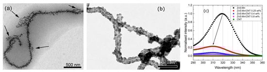 - Sarpong, L.K.; Bredol, M.; Schönhoff, M.; Wegrzynowicz, A.; Jenewein, K.; Uphoff, H. One-pot synthesis of carbon nanotube/zinc sulfide heterostructures: Characterization and effect of electrostatic interaction on the optical properties. Opt. Mater. 2018, 86, 398–407. [Google Scholar] [CrossRef]