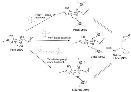 As straw surface modifiers, silanes of the different structures have been investigated, which exhibited different activities in the vulcanization of NR. Vulcanization is a chemical process for cross-linking unsaturated polymeric chains of rubber using sulfur. This process has played an important role to achieve the elasticity of rubber.