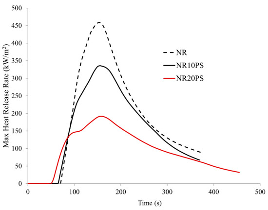 HRRmax curves of NR rubber composites containing pure straw filler.