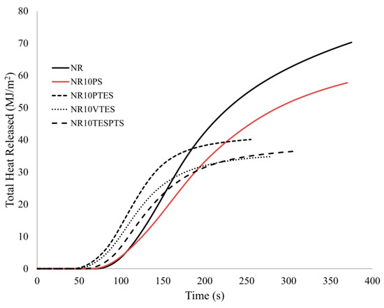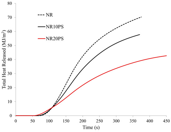 Total heat release (THR) curves of NR rubber composites containing pure straw filler.