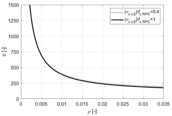 Objective function (according to Equation (7)) depending on the reinforcement ratio at different ratios of the maximum compressive stress in the RPC layer to its compressive strength .