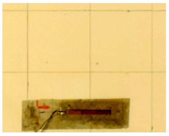 To measure the normal strains , , and , two strain gauges were used, which were attached symmetrically on vertical surfaces on both sides of the beam. All of the strain gauges had a resistance of 120 Ω and an active length of 60 mm (Tenmex TFs-60/120). They were glued with cyanoacrylate adhesive to previously-sanded and epoxy-impregnated surfaces of the concrete (Figure 11). Figure 10 also presents unmarked and diagonally glued strain gauges on the left side of the element, which were not used in further studies.