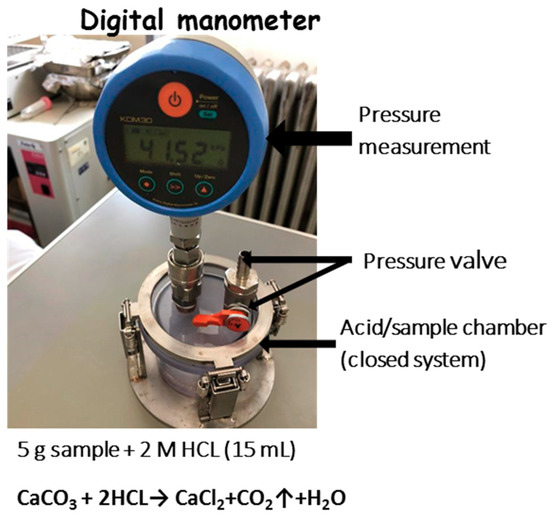 Digital manometer setup used to measure the CaCO3 content.