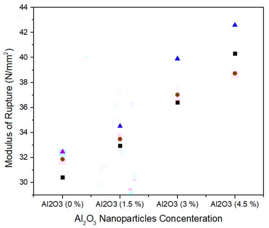 Numerical values of modulus of rupture (MOR) of various treatments of alumina nanoparticles.