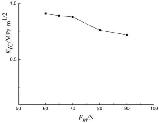 Length of radial crack and radius of micro-indentation are two important measurement parameters for fracture toughness indentation test. Figure 12 displays the relationship between Kic and Fm. It is clear that Kic decreased slightly with the increase of load. The crack lengths for shale samples are 1–3 mm for Berkovich indenter. These small cracks which are difficult to measure can cause measurement deviation of fracture toughness. As previously discussed, compared with Vickers indenter, the geometry of Berkovich indenter is more conducive to a sharp tip. Tip geometry has a critical effect on fracture initiation.