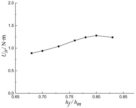 Analysis of fracture energy provides a way to evaluate the relationship between fracture energy and fracture toughness. Figure 14 compares the Uir with the ratio of hf/hm. It is concluded that when hf/hm is between 0.68 and 0.84, Uir differ by 0.1~0.4 N·m, and the Uir value shows an upward trend.