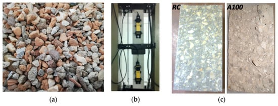 The construction sector is amongst the most environmental impacting in Europe, consuming high amounts of raw materials and energy. Naturally, this contributes to a high generation of construction and demolition waste (CDW), which is the largest fraction of waste produced in the European Union: about 900 million tonnes of the total 3000 million tonnes of waste generated yearly [1]. Recycling of CDW with its re-introduction in the construction sector has emerged and has been shown to be economically and environmentally viable [2,3,4,5], constituting a solution not only to the reduction in the volume of waste deposited into landfills, but also to the reduction in the extraction of raw materials. However, CDW are still mostly used as flexible road pavement sub-bases and rarely used as recycled aggregates (RA) for concrete production. This derives from the fact that RA from CDW have a much higher variability of composition and show worse properties than those of natural aggregates (NA). In general, RA tend to be more porous and to have more elongated shapes and higher roughness than those of NA [6]. This results in more porous recycled aggregate concrete, not only due to the higher porosity of the RA but also to the need for higher amounts of mixing water to maintain workability. As a consequence, recycled aggregate concrete displays lower mechanical and durability-related properties than natural aggregate concrete.