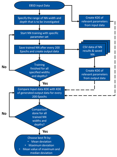 To describe these connections reliably, some kind of pattern recognition has to be applied to the input data of the EBSD pictures. Machine learning and deep learning methods are particularly suitable for this purpose, as they are able to reproduce the individual distributions of parameters and the relationships between them. They are often used for this purpose, in different areas of industry and science. Examples include the process industry [16], finance[17], the automotive sector[18], as well as research in the field of materials science [19]. Since machine learning has exactly the strengths needed to generate interdependent input data, a deep learning approach was used for this material. This allowed the generation of a virtually unlimited amount of input data, which follows the distribution functions of the individual parameters, but also exactly reflects the dependencies between individual parameters.