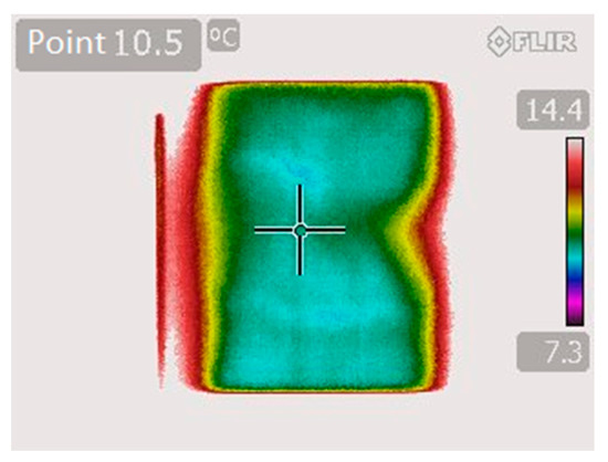 Thanks to the cooled print bed the printouts did not “spill” outwards and kept their shape with high dimensional accuracy. The temperature ideal for instant solidification of the hydrogel was 10 °C. This allowed for rapid crosslinking of gelatin even up to 14 layers. The system was checked for temperature uniformity on the surface of the print bed (Figure 10). A thermal image was captured with the FLIR T420 Infrared Thermal Imaging Camera.