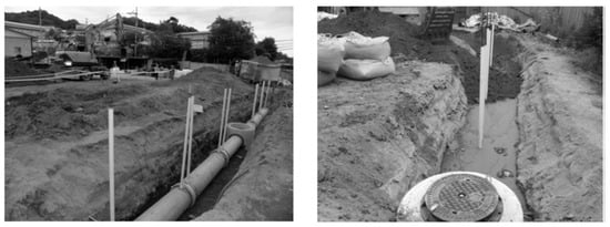 - Lee, K.H.; Kim, J.D.; Hyun, S.C.; Song, Y.S.; Lee, B.S. Deformation behavior of underground pipe with controlled low strength materials with marine dredged soil. J. Korea Soc. Hazard Mitig. 2007, 7, 129–137. [Google Scholar]