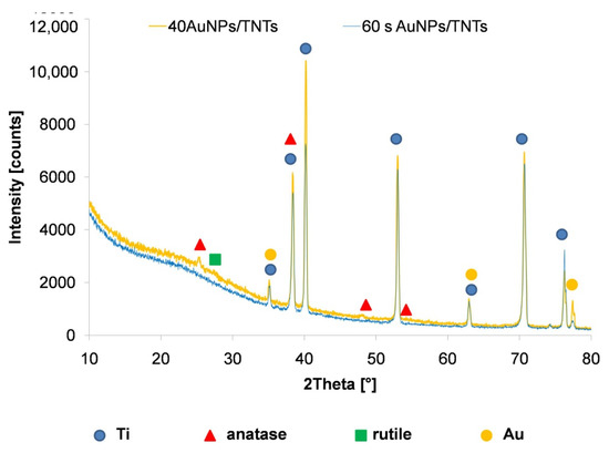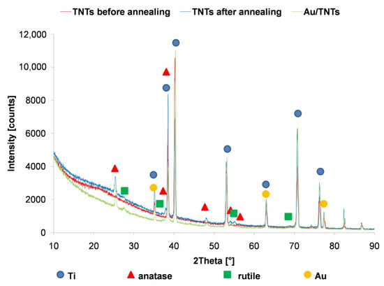 2.6. Characteristics of Morphology, Chemical and Phase Composition of TNTs and AuNPs/TNTs