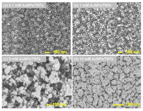 - Mahmud, A.; Habiballah, A. Synthesis and morphological characterization of gold nanoparticles (AuNPs) supported on anodized titanium oxide (TiO2) nanotubes. Mat. Sci. Forum 2015, 819, 405–410. [Google Scholar]
