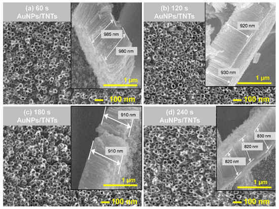 | Sample | TNTs | 60 s AuNPs/TNTs | 120 s AuNPs/TNTs | 180 s AuNPs/TNTs | 240 s AuNPs/TNTs |