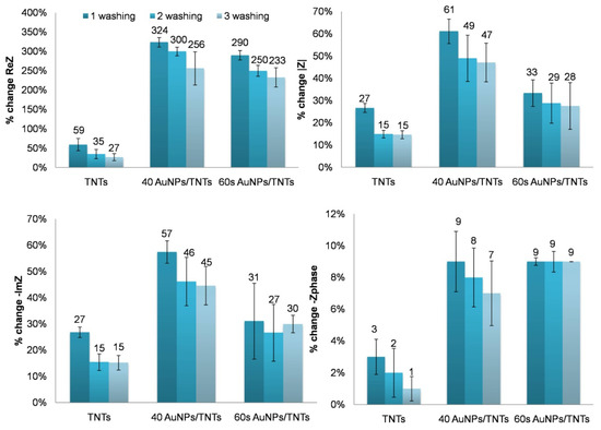 | 60 s AuNPs/TNTs | 18.9 | 1.4 | 1.6 | 43.4 | 8.8 | 21.4 | 4.5 |