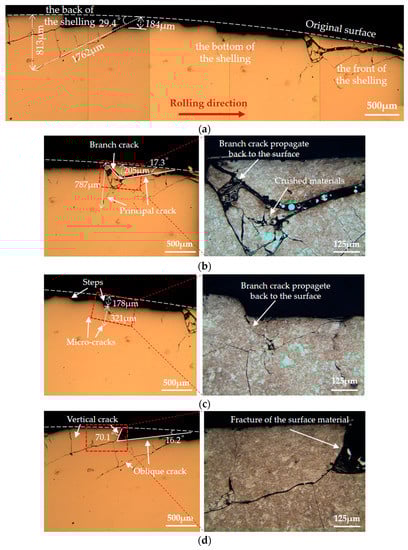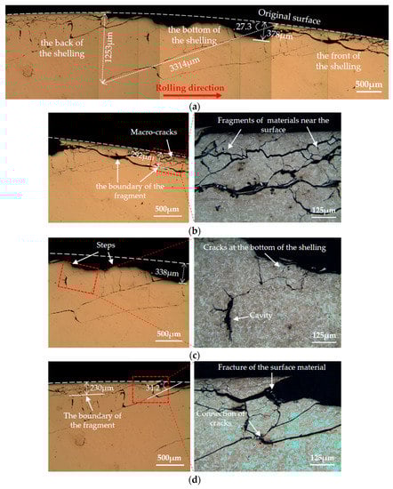 - Gao, B.; Tan, Z.; Liu, Z.; Gao, G.; Zhang, M.; Zhang, G.; Bai, B. Influence of non-uniform microstructure on rolling contact fatigue behavior of high-speed wheel steels. Eng. Fail. Anal. 2019, 100, 485–491. [Google Scholar] [CrossRef]