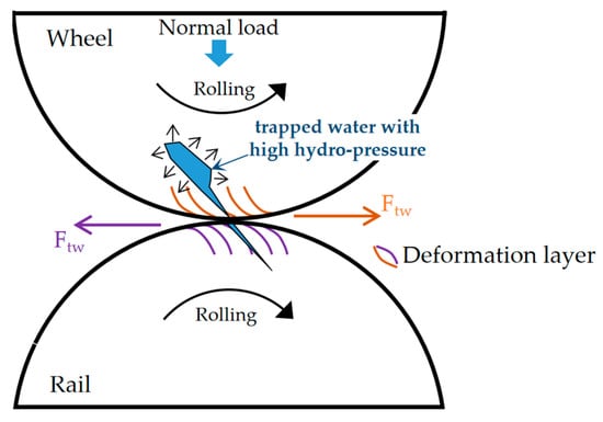- Huang, Y.; Shi, L.; Zhao, X.; Cai, Z.; Wang, W.; Wang, W. On the formation and damage mechanism of rolling contact fatigue surface cracks of wheel/rail under the dry condition. Wear 2018, 62–73. [Google Scholar] [CrossRef]