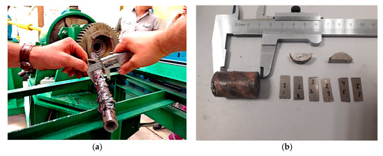 Workpiece after radial-shear rolling (a) and samples from the final bar (b) to study the microstructure.