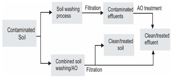 Conclusively, SW/SF/EK/SR coupled with AO is an efficient technology for the remediation of organic contaminated soils. The AO process can be applied as a post-treatment stage to treat the organic loads in the effluents obtained after SW/SF/EKSR processes. In situ SW/SF/EK/SR coupled with AO is very rare in the literature but the configuration is a very exciting technology for treating organic polluted soils. Future studies should be channeled towards optimization of the operation parameters, assessment of toxicity and environmental impact of the treated soil and washing effluents, as well as scale-up and field implementation of the combine process. Several other complementary techniques or materials are emerging that can provide improvements in the efficacy of integrated technologies (e.g., nanomaterials [132] and absorbents [133]).